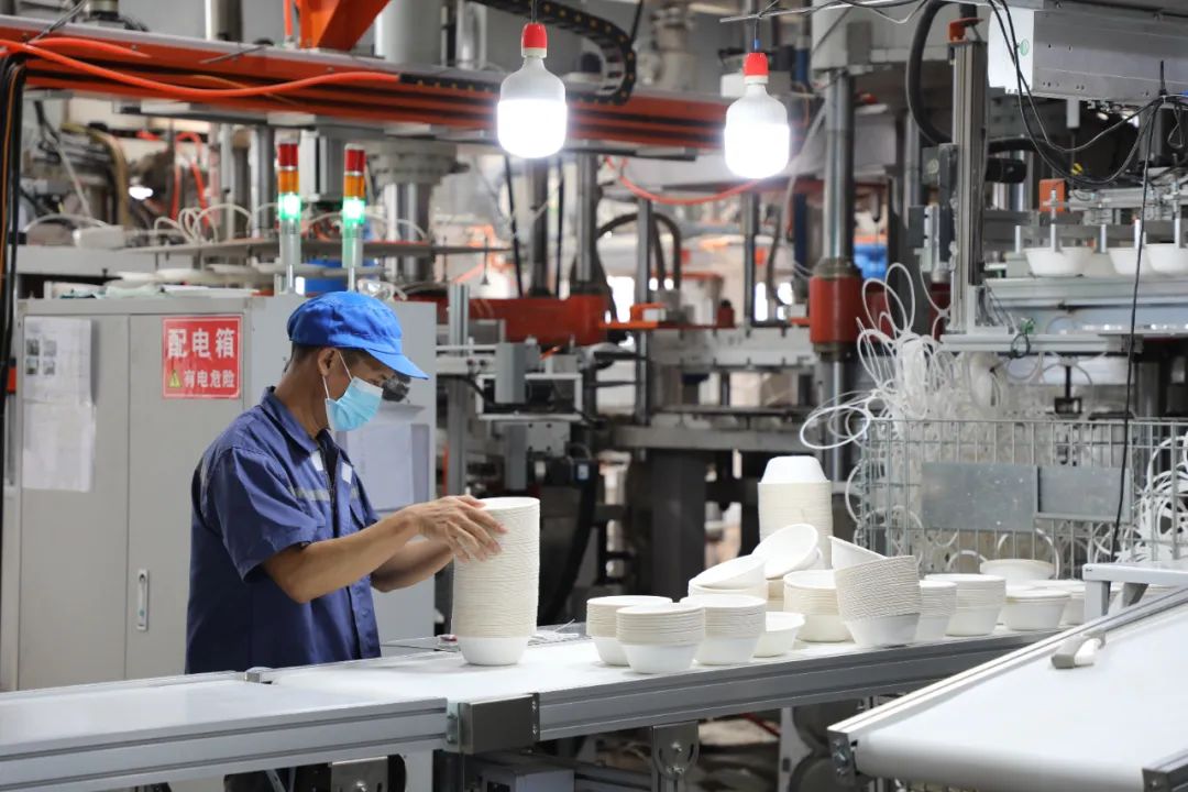 以蔗代塑,变废为宝。该公司自2023年11月开工以来, 已完成3万吨生产线设备安装并开始投入生产运营,项目整体建成后年产能10万吨,年产值15亿元,为当地提供就业岗位800个,将有力促进群众就近就业,助力当地打造糖业循环经济,带动龙州经济社会发展。