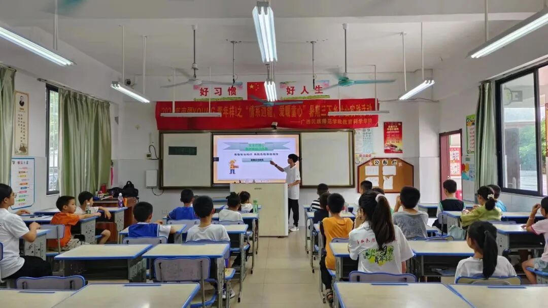 7月14日至7月19日,夏石镇团委与共青团广西民族师范学院教育科学学院联合开展“情系边疆 爱暖童心”暑期“三下乡”社会实践活动。实践团队深入夏石镇各村屯,通过实地走访、知识宣讲、心理辅导、爱心捐赠等方式,为夏石镇的青少年儿童送去知识、欢乐、温暖和关爱,用实际行动为乡村振兴贡献青春力量。