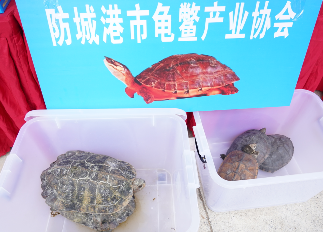 ▲特色农副产品展示会场上一只只可爱的乌龟。